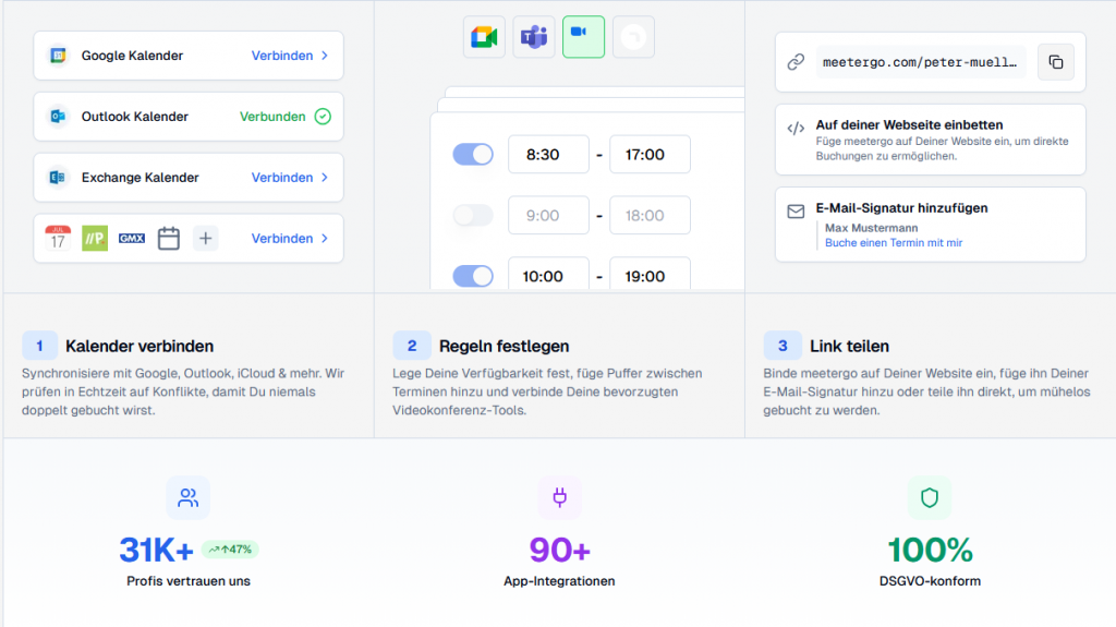 Meetergo lässt sich einfach einrichten (Foto: Screenshot meetergo.com)